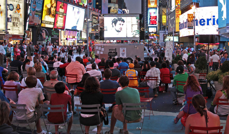 The big three squares are Times Square, the city's favorite rendezvous for all mega events, marking historical moments, celebrating the end of World Wars, watching the Inauguration on large flat screens, and ringing in the New Year. It's the central rallying point for the city.